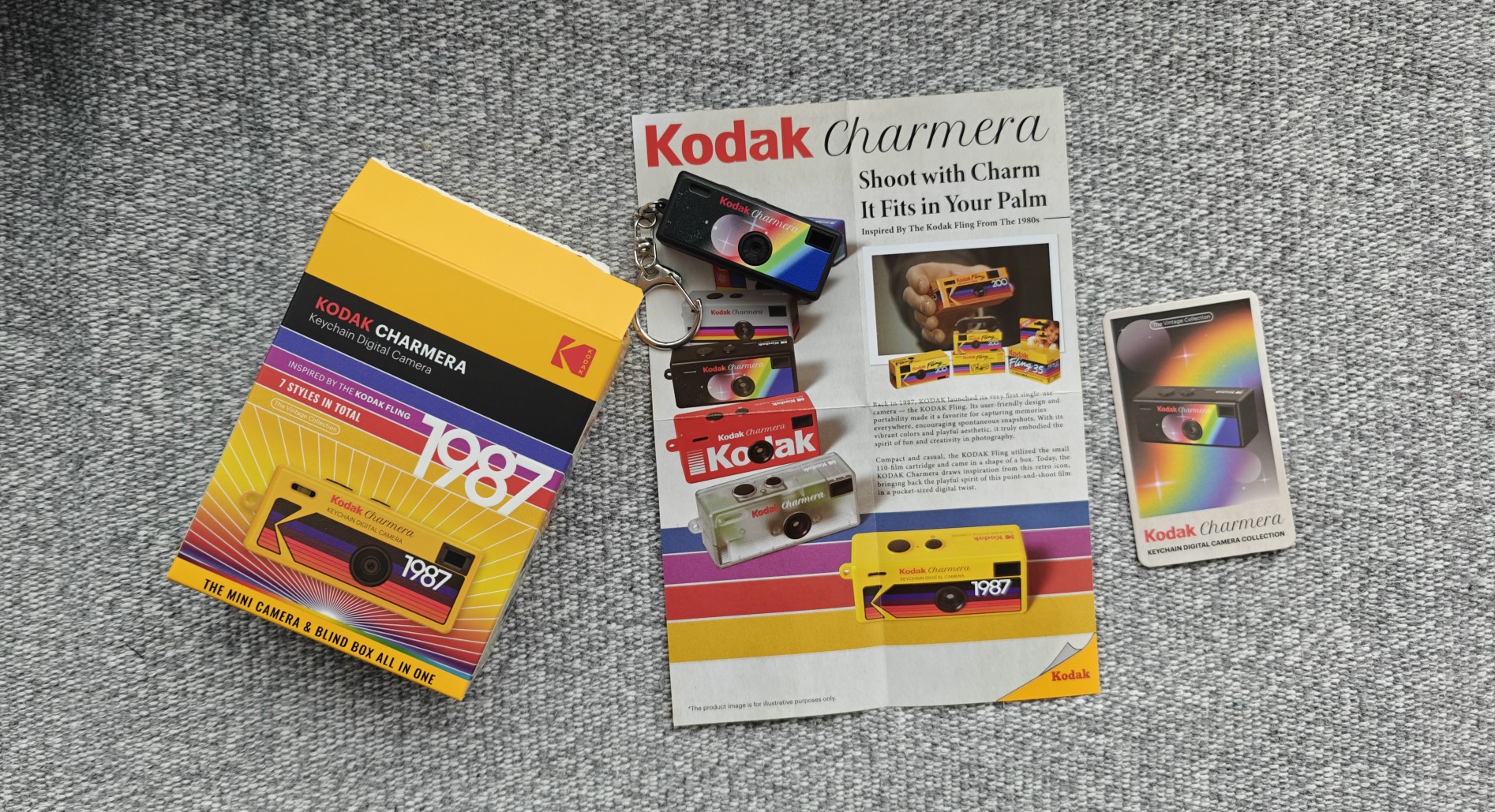 不知道为啥,最近柯达的这个 CHARMERA 钥匙链相机卖的特别火爆。虽然只是由柯达授权的 RETO Production Limited 设计、生产,但复古的配色、小巧的外形,再叠加盲盒的售卖形式,确实是有炒作潜质的。它的官网售价是 29.99 美元,约合人民币 214 元。我在 10 月 16 日从「闲鱼」订了一个,11 月 7 号才到货,花了 249.99 元。端盒的一套六个是在上海的实体店订到的,原价 238 元,明天去提货。